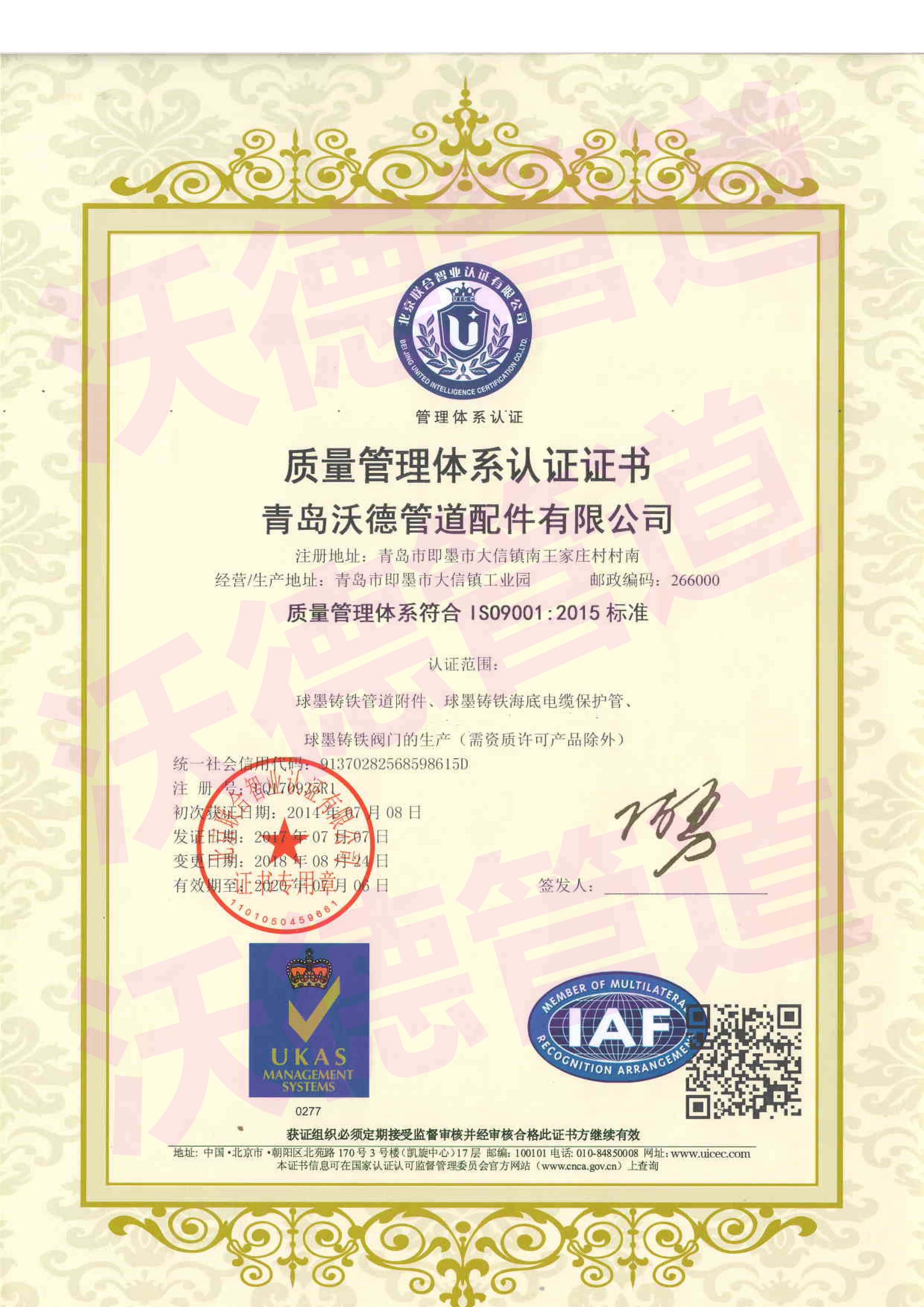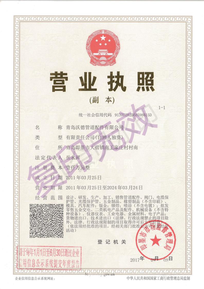 青島沃德管道配件有限公司,是位于山東青島即墨市藍(lán)村東部工業(yè)園的一家大型鑄造機(jī)械工廠,位置距離青島機(jī)場20分鐘車程,距離青島火車北站30分鐘車程, 距離青島集裝箱碼頭40分鐘車程, 交通便利。 工廠占地30畝,生產(chǎn)車間15000 ㎡, 現(xiàn)有管理人員20-25人, 工人150人左右。每年生產(chǎn)管道類鑄鐵件9000噸左右,2017銷售產(chǎn)值人民幣6000萬, 2018銷售產(chǎn)值人民幣7000萬,主要產(chǎn)品如下: